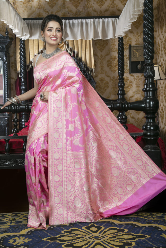 Baby Pink katan benarasi wovenin zari