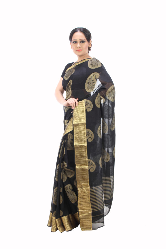 Black georgette benarasi with traditional buttas.